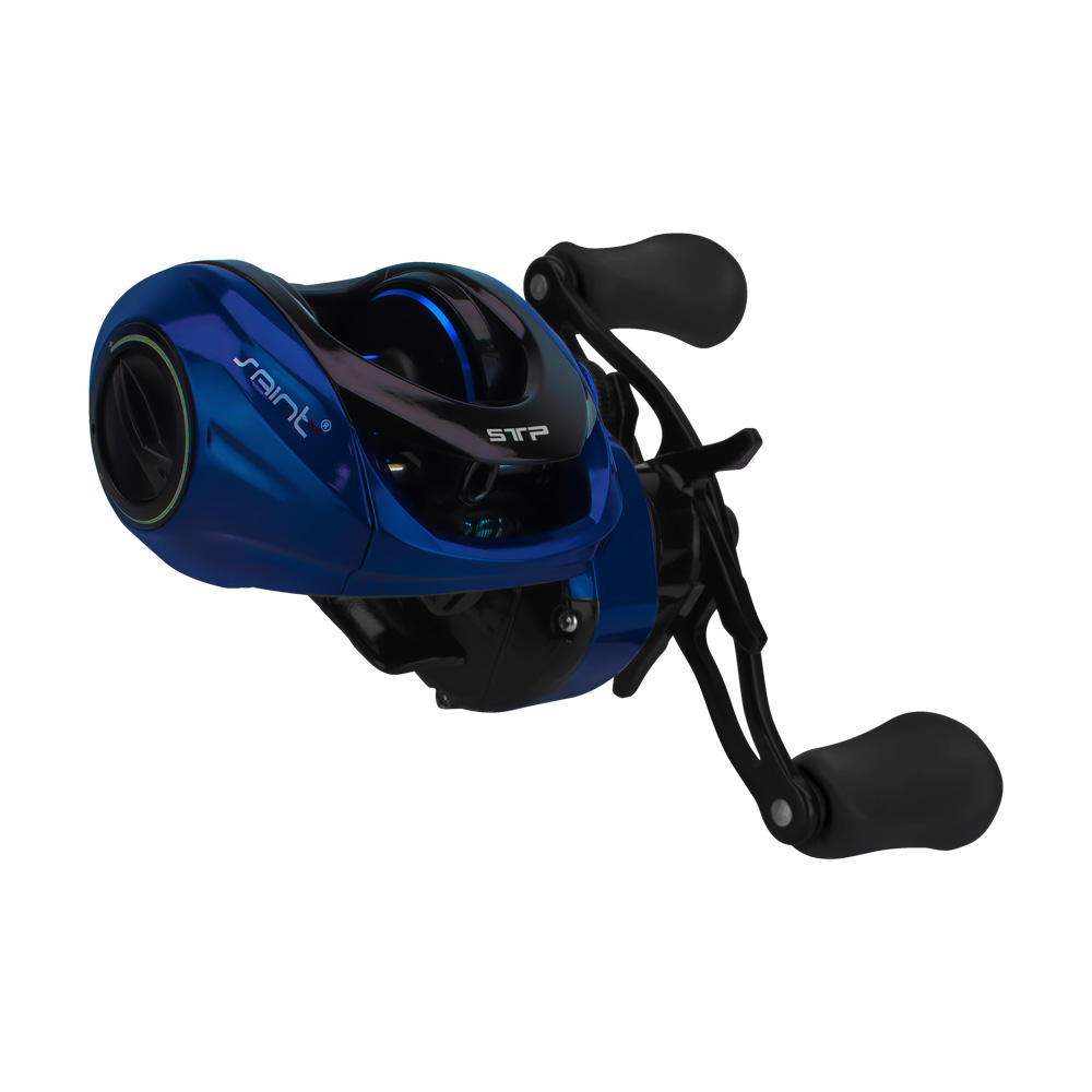 A carretilha STP possui chassi e laterais em grafite, carretel e manivela em alumínio, o que proporciona muita leveza. Além disso, ela também conta com coroa e pinhão em latão, 6+1 rolamentos em aço inoxidável, recolhimento 8.1:1, o recolhimento por volta é de 81cm e a tração de 5kg.