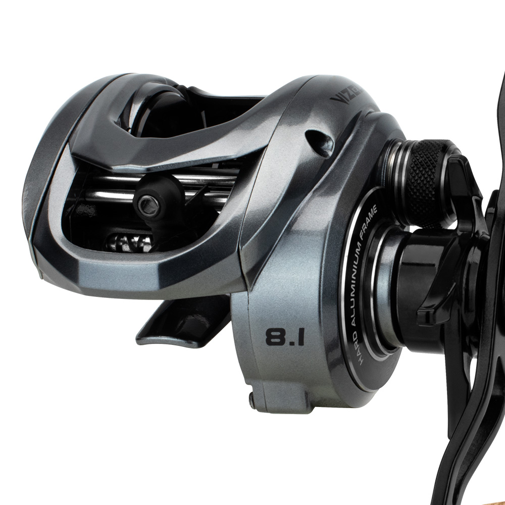 A carretilha Vizel está de cara nova! Projetada com desempenho e durabilidade excepcionais, a Vizel conta com chassi e manivela em alumínio, laterais em grafite e pegadores de cortiça personalizados. A coroa e pinhão em latão apoiado em rolamentos garantem precisão e resistência. O carretel em alumínio com sistema flutuante e distribuidor de linha cônico garantem longos arremessos. Além disso, possui sistema de freio centrífugo e 10+1 rolamentos em aço inoxidável, sendo uma carretilha resistente à água salgada. A Vizel possui drag de 6,5kg com 4 discos de fricção em carbono e é perfeita para pescarias tanto em água doce quanto salgada!